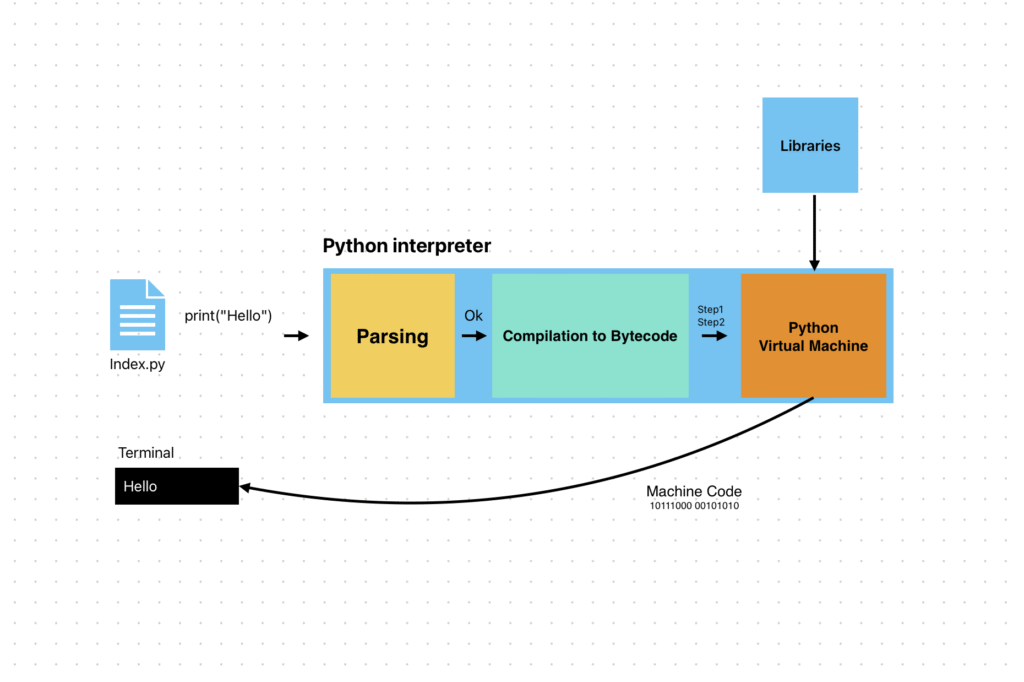 3. Execution by PVM (Thực thi bởi PVM): Python Virtual Machine thực thi bytecode.